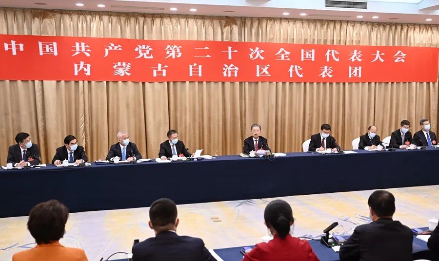 10月17日,赵乐际同志参加他所在的党的二十大内蒙古代表团讨论。新华社记者 张领 摄