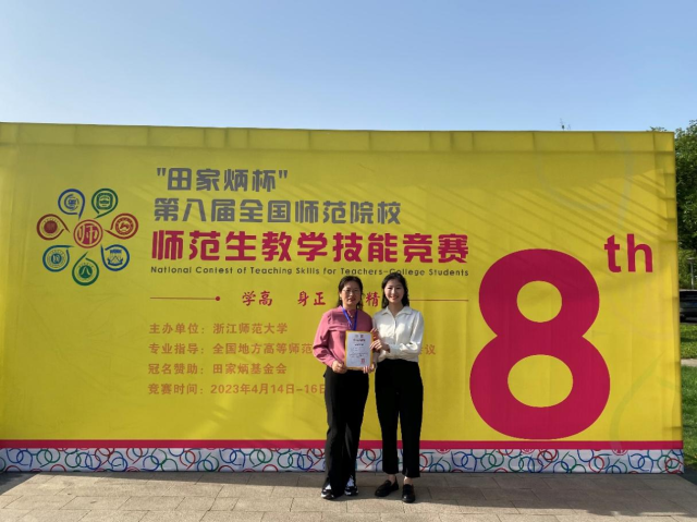 2023年4月14-16日,“田家炳杯”第八届全国师范院校师范生教学技能竞赛决赛在浙江金华顺利举行,来自全国32所高校的32名入围决赛的师范类学生齐聚金华,展开了一场精彩的师范生从业技能大比拼。经过激烈角逐,由我院李梅娟老师指导的2019级学生李天宇获得二等奖。