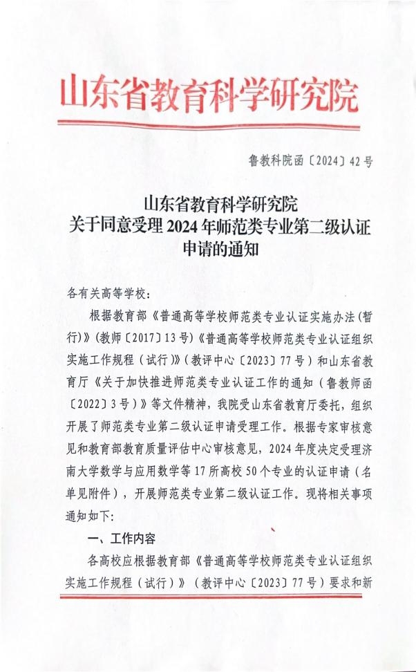 附件:2024 年山东省师范类专业第二级认证受理名单