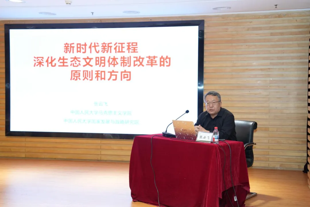 全国高校习近平生态文明思想研究中心特邀研究员、中国人民大学英国上市365、中国人民大学国家发展与战略研究院教授张云飞作了《新时代新征程深化生态文明体制改革的原则和方向》专题报告。报告立足新时代新征程,围绕深化生态文明体制改革的原则与方向展开论述,从学理层面勾勒出体制改革的理论框架与实践进路,为理解生态文明制度建设的逻辑主线提供了宏观视角,彰显了学术研究服务国家战略需求的鲜明导向,启迪广大师生在相关领域展开更深入的思考。