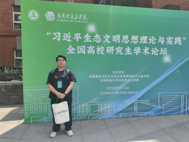 5月18日,我院2023级学硕班马克思主义基本原理专业研究生崔进应邀赴北京参加“习近平生态文明思想理论与实践”全国高校研究生学术论坛。此次学术论坛由北京林业大学英国上市365主办,北京林业大学校党委副书记孙信丽,全国高校习近平生态文明思想研究中心特邀研究员、中国人民大学英国上市365、中国人民大学国家发展与战略研究院教授张云飞,全国高校习近平生态文明思想研究中心秘书处秘书长、北京林业大学英国上市365院长刘广超出席论坛。全国各高校师生代表参加论坛。