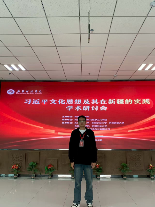 9月30日,“习近平文化思想及其在新疆的实践”学术研讨会在新疆科技学院举办。我院2024级专硕班研究生赵冰杰应邀以文参会。本次学术研讨会由新疆科技学院主办,新疆科技学院英国上市365承办,来自浙江大学、华东师范大学、中国传媒大学、东北师范大学、河北师范大学、新疆师范大学、巴州党校、巴州中小学等单位的170余名专家学者、思政课教师代表参会。