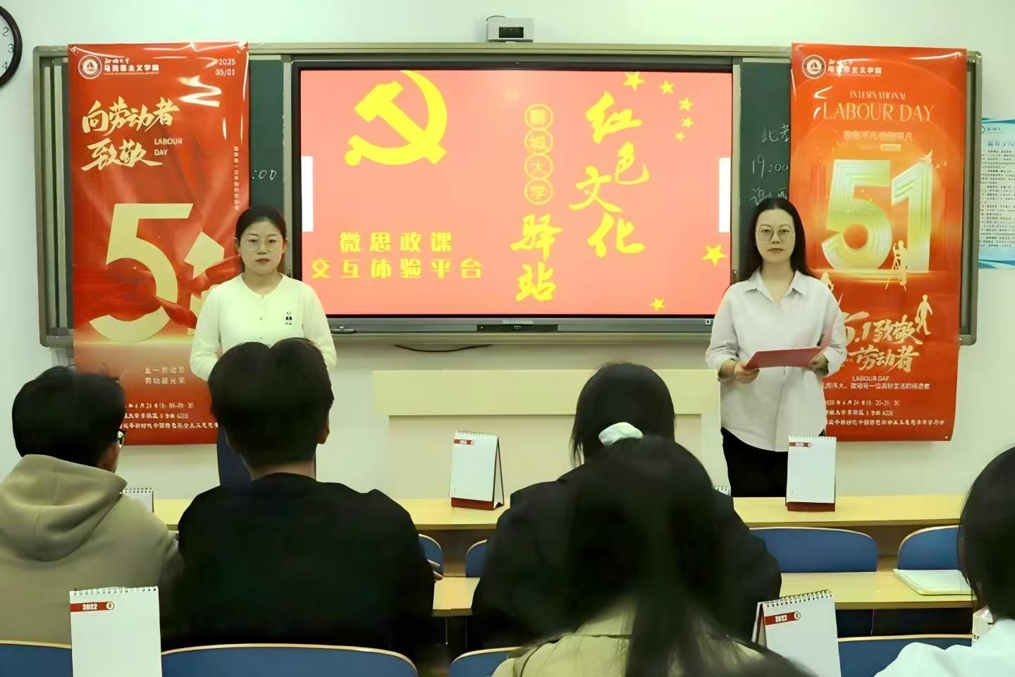弘扬劳动精神,致敬劳模先锋。4月24日,我院开展第三十期思政年历微思政课交互体验活动——国际劳动节,习近平新时代中国特色社会主义思想青年学习会骨干成员钟翠、王冉冉担任主讲人。