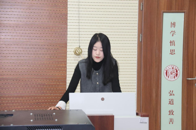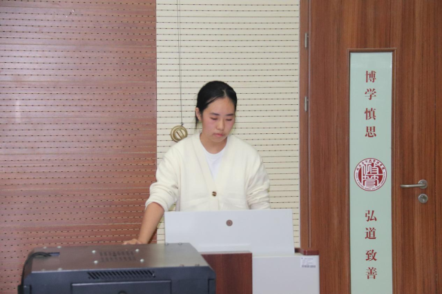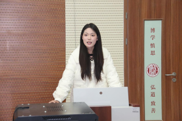 赵清仪则聚焦“遗”启助残——非遗技艺助力残障人士就业志愿服务项目,从项目背景、内容、特色及成效四个维度生动展现志愿服务在推动社会公益中的积极作用。她结合项目落地过程中的真实案例,详细阐释了项目如何精准对接残障群体需求、打造差异化服务模式。黄荟翰围绕项目策划、备赛策略、志愿服务大赛、项目介绍四个方面,系统梳理了志愿服务项目从创意构思到赛事申报的全流程关键节点,呼吁同学们积极参与志愿服务,弘扬“奉献、友爱、互助、进步”的志愿精神。