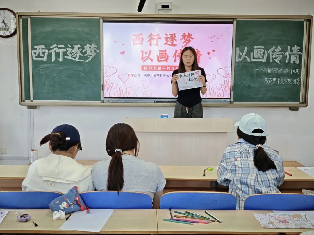 活动现场,负责人围绕西部计划的政策要点与志愿服务精神的内涵展开系统讲解,从国家战略需求、青年成长路径、基层发展现实等多个层面,帮助参赛者深入理解西部计划的时代意义与价值导向,为后续手抄报创作提供清晰的主题方向与思想基础。参赛者紧扣西部建设、基层服务、青春奉献等核心主题,结合自身理解与感悟,精心绘制手抄报,传递对西部的热忱与向往。