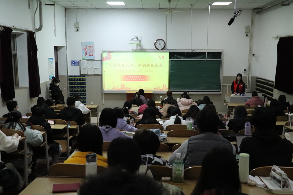 12月18日,青年大学生时政宣讲团成员吕琦,在文学院A319室作习近平新时代中国特色社会主义思想宣讲,文学院2022级学生代表参加此次宣讲会。