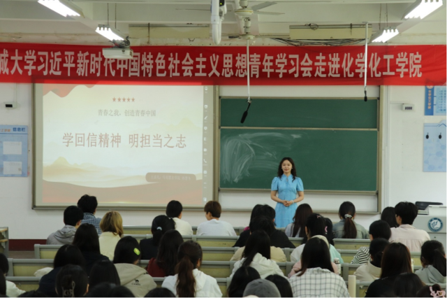 领悟回信精神,勇担青年使命。五四青年节前夕,习近平总书记给新疆谢依特小学戍边支教西部计划志愿者服务队全体队员回信,向全国广大青年致以节日祝贺并提出殷切期望。宣讲员成员紧扣这一学习热潮,分别为校研究生会成员和化学化工学院青马班学员开展主题宣讲。孙慧冬以详实新闻与生动视频为依托,围绕“学习重要回信精神”、“青春的力量,西部的希望”、“新时代青年的使命担当”三个核心维度展开了深刻阐述。她带领在场学子重温回信内容,深入解读总书记对新时代青年的嘱托。她指出,习近平总书记在回信中的句句嘱托,时刻提醒广大青年坚定理想信念、厚植家国情怀,始终把个人成长与国家发展紧密相联,为广大青年指明了未来的奋斗方向。当代青年生逢其时,也重任在肩,在国家发展的各领域,都需要青年勇当排头兵和生力军。她号召在场青年学子以回信精神为指引,积极响应时代召唤,将个人理想融入国家发展大局,在实现中国梦的伟大实践中绽放青春。