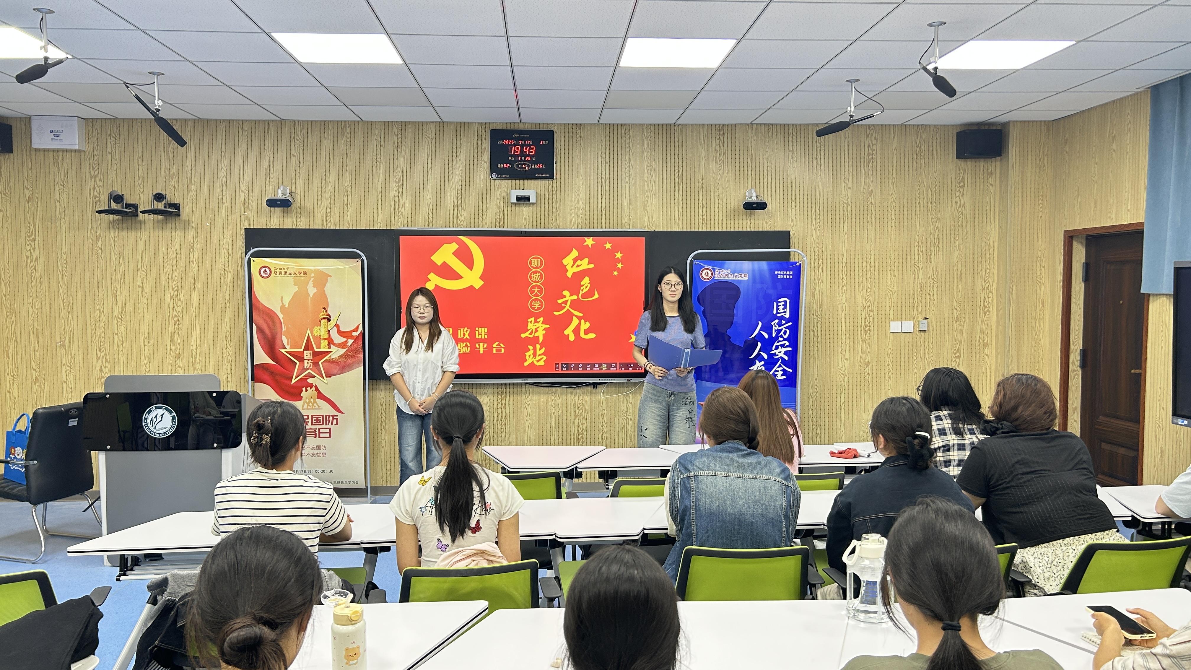担国防之责,扬青春之歌。9月15日,我院开展第三十七期思政年历微思政课交互体验活动——全民国防教育日,习近平新时代中国特色社会主义思想青年学习会骨干成员于梦蝶、韩梦如担任主讲人。