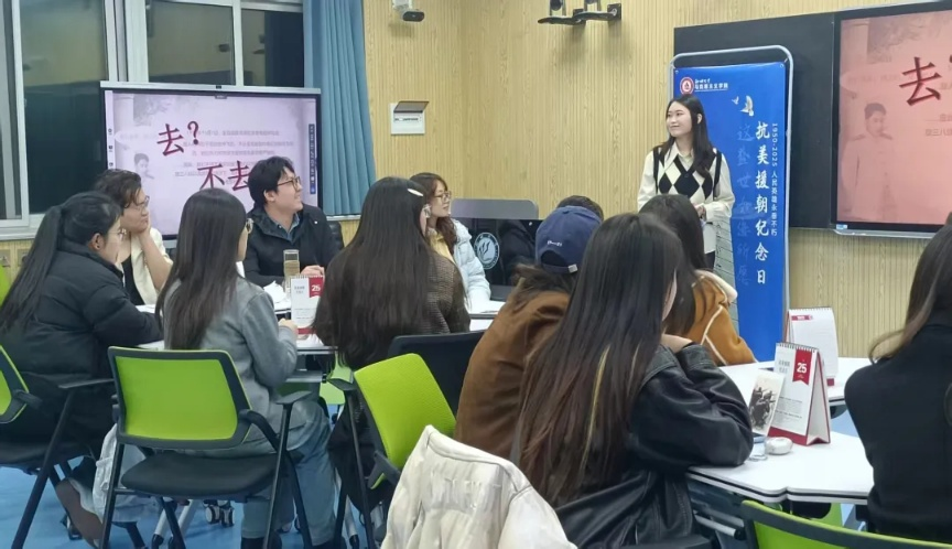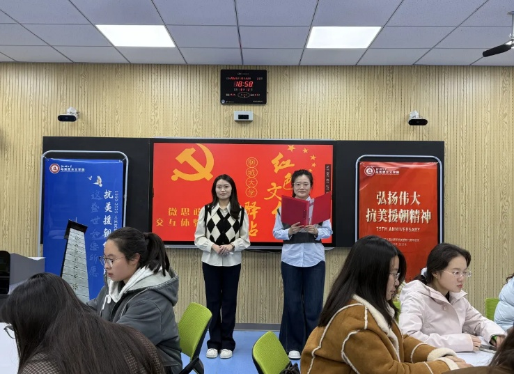 敬英烈不朽,续精神血脉。在抗美援朝出国作战75周年之际,我院开展第四十二期思政年历微思政课交互体验活动——抗美援朝纪念日,习近平新时代中国特色社会主义思想青年学习会骨干成员邵晓雅、马雪琛担任主讲人。
