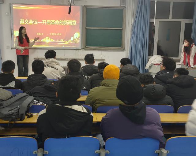 12月17日,我院青年大学生时政宣讲团成员赵乐文、郭昊铭在体育学院开展了题为《遵义会议—开启革命的新篇章》的宣讲,体育学院2023级2班、4班代表参加此次宣讲会。