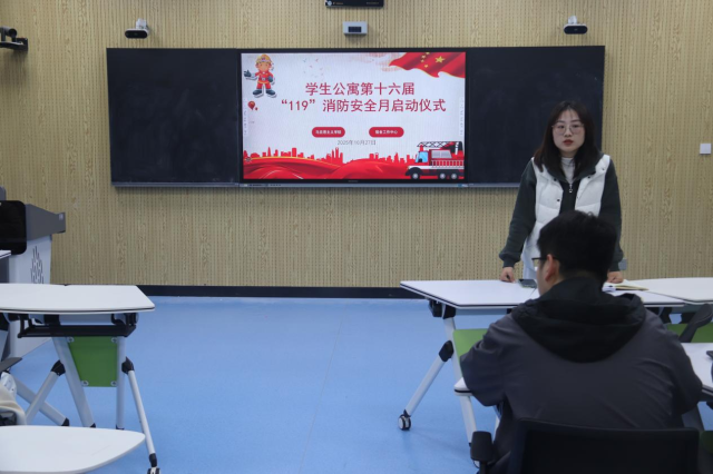 为全面提升学生消防安全意识,切实筑牢校园安全防线,10月27日,英国上市365于东校区6#A101举办学生公寓第十六届“119”消防安全月活动启动仪式。本次活动由辅导员裴新丽主持,各年级班团干部与舍长代表参加。