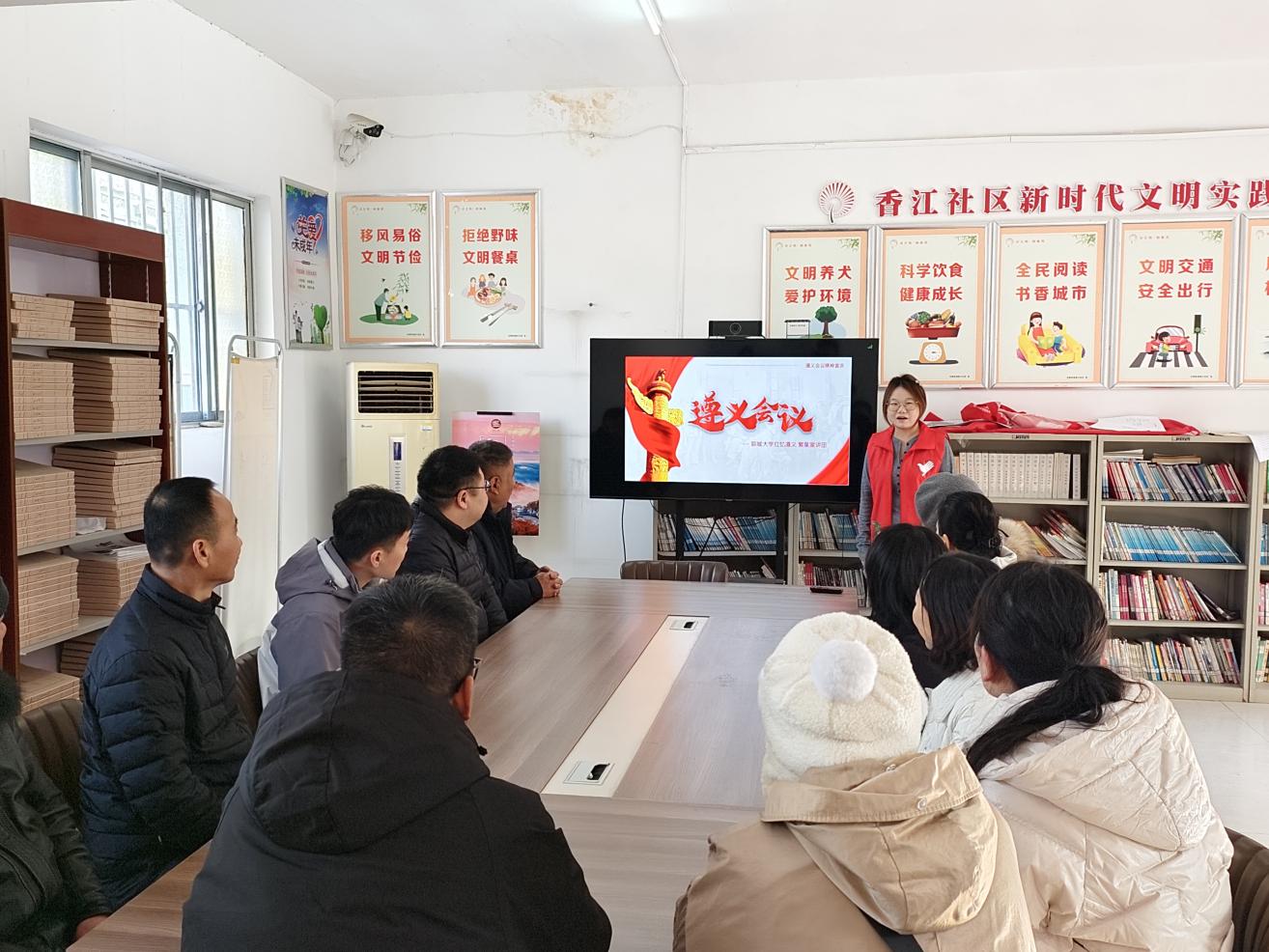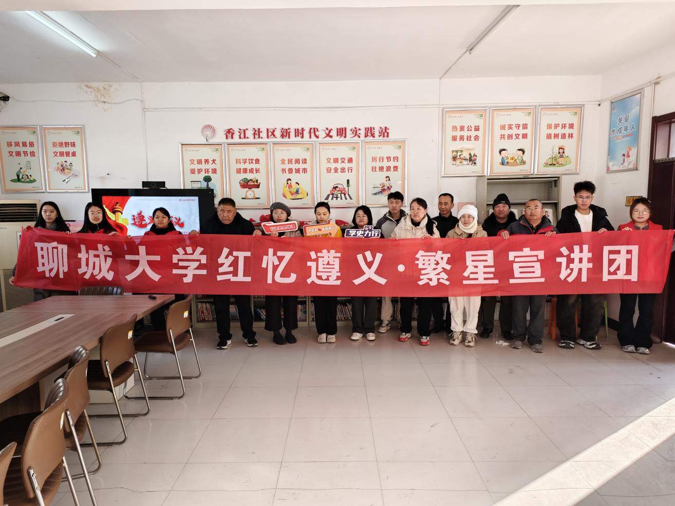 12月2日,青年学习会红忆遵义·繁星宣讲团成员郭昊铭、梁荣慧、于梦蝶、孙倩茹、王佳慧到东昌府区古楼街道香江社区开展了题为《遵义会议精神:独立自主勇闯新路》的宣讲,香江社区居民代表参加此次宣讲活动。
