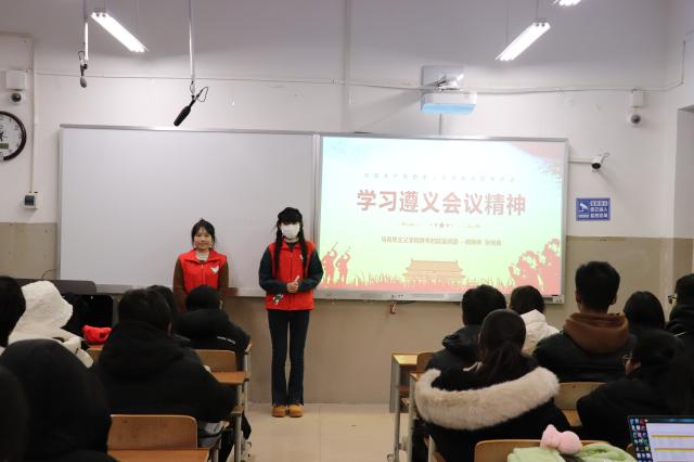 12月20日,我院青年大学生时政宣讲团成员郭琳琳、张向青在文学院A307室作遵义会议精神宣讲,文学院2023级学生代表参加此次宣讲会。