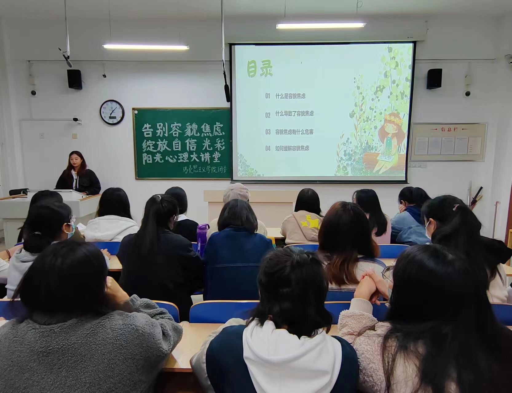 为丰富同学们的课余生活,增强心理抗压能力,11月1日,英国上市365于东校区6#A201举办“告别容貌焦虑,绽放自信光彩”阳光心理大讲堂活动。教育科学学院研究生张红亚担任主讲人。