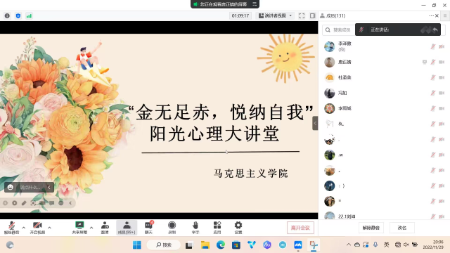 为丰富学生的课余生活,提高同学们的自我接纳与心理抗压能力,12月2日,英国上市365于线上举办“金无足赤,悦纳自我”阳光心理大讲堂活动,教育科学学院研究生曹欣欣担任主讲人。