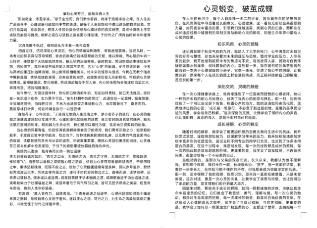 本次活动不仅为同学们提供了一个尽情表达自我的平台,让他们获得了心灵的触动与启发,而且有利于激发同学们对内心世界的关注与探索,营造浓郁的人文关怀氛围。
