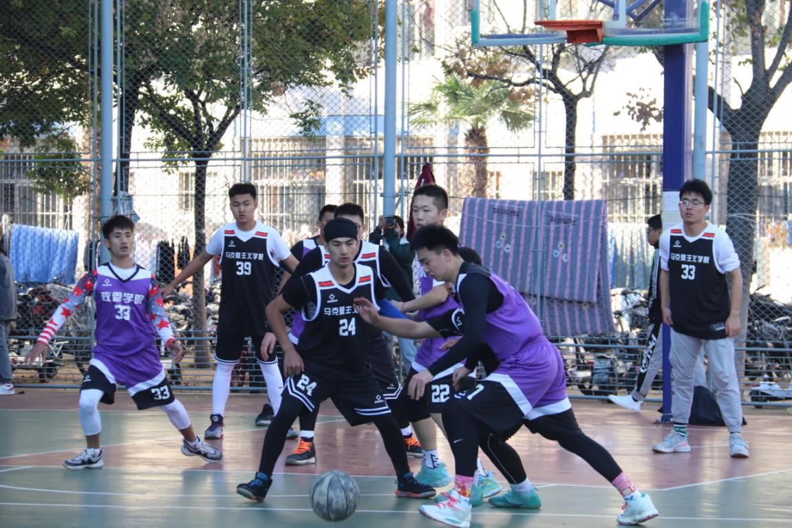 金秋十月,丹桂飘香。马院和政管两队队员身着本院队服,在短暂的热身后和战术沟通后,上半场比赛开始。双方展开了激烈角逐,比分交替上升,僵持不下,在短暂休息后,略显弱势的队伍在篮球队队长的带领下组织进攻,配合默契。易边再战,经过了中场休息,队员们士气高昂,体力充沛。下半场比赛进入白热化阶段,两支队伍都咬紧牙关,尽力抓住机会。比赛过程中,各位队员用心防守、有力阻挡,越战越勇,显示了他们极佳的心理素质。在场的观众情绪高涨、摇旗呐喊,不时为队员打气、喝彩,气氛热烈。在全场观众的呐喊助威声中,比赛进入了最终的关键时刻,比分落后的队伍奋起直追,领先的一队也严阵以待。随着比赛结束哨音的响起,此次新生篮球赛在同学们的阵阵掌声中结束,双方队员也微笑着击掌拥抱。