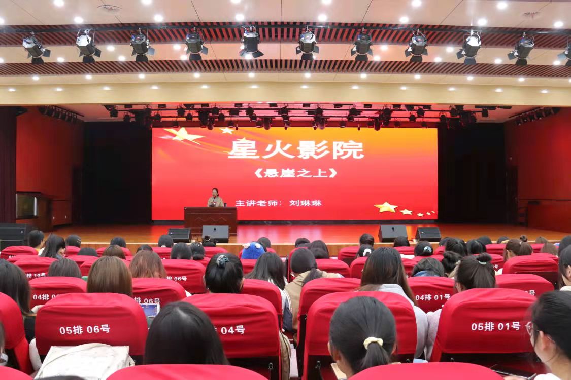 回望百年征程,追寻百年梦想。刘琳琳声情并茂地为同学们讲述了先辈们的故事,称赞他们为实现中华民族的伟大复兴而做出的不懈努力,详细介绍了电影的背景和大致内容,并利用电影提醒同学们要铭记历史、缅怀先烈以及向先烈们学习其不畏牺牲的英勇精神。电影《悬崖之上》以1937年抗日战争为背景,讲述了老一辈共产党员在风雨飘摇的时代为国家赴汤蹈火的精彩故事。在观影过程中,同学们目视荧幕,聚精会神,情感时刻跟随情节发展而变化,从电影中感受革命先辈们对共产事业的崇高信仰和不懈追求, 深刻领会了习近平总书记“崇尚英雄才能产生英雄,争做英雄才能英雄辈出”的号召,增强了爱国、爱党、爱团的意识,同学们深受震撼。