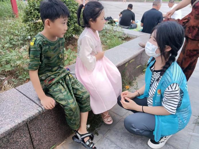 服务队成员在公园内随机采访了几位学生,初步了解了中小学生临近开学的心理状态。部分学生表示,开学焦虑这种不良情绪普遍,造成这种心理的原因多样,其中对新功课的忧虑是主要因素。在与一些学生家长的交流中,志愿者了解到,家长对于开学同样感到紧张。从新学期换老师、调座位,到学生学习成绩的点滴变化,都牵动着家长的心。其中,一位中学生的妈妈说道,自己虽然希望孩子能够无忧无虑的成长,但想到他将要面临的挑战,总是抑制不住的对他提出新的要求。活动最后,服务队成员对学生产生开学焦虑这种不良情绪的原因加以总结,并为帮助各位同学缓解开学焦虑、及时适应新环境提出了一些切实可行的建议,比如进行积极的心理暗示、适量运动。同时,志愿者也呼吁各位家长多与孩子沟通,适当降低期待值,从而帮助孩子走出不必要的焦虑,更加健康、快乐的成长。