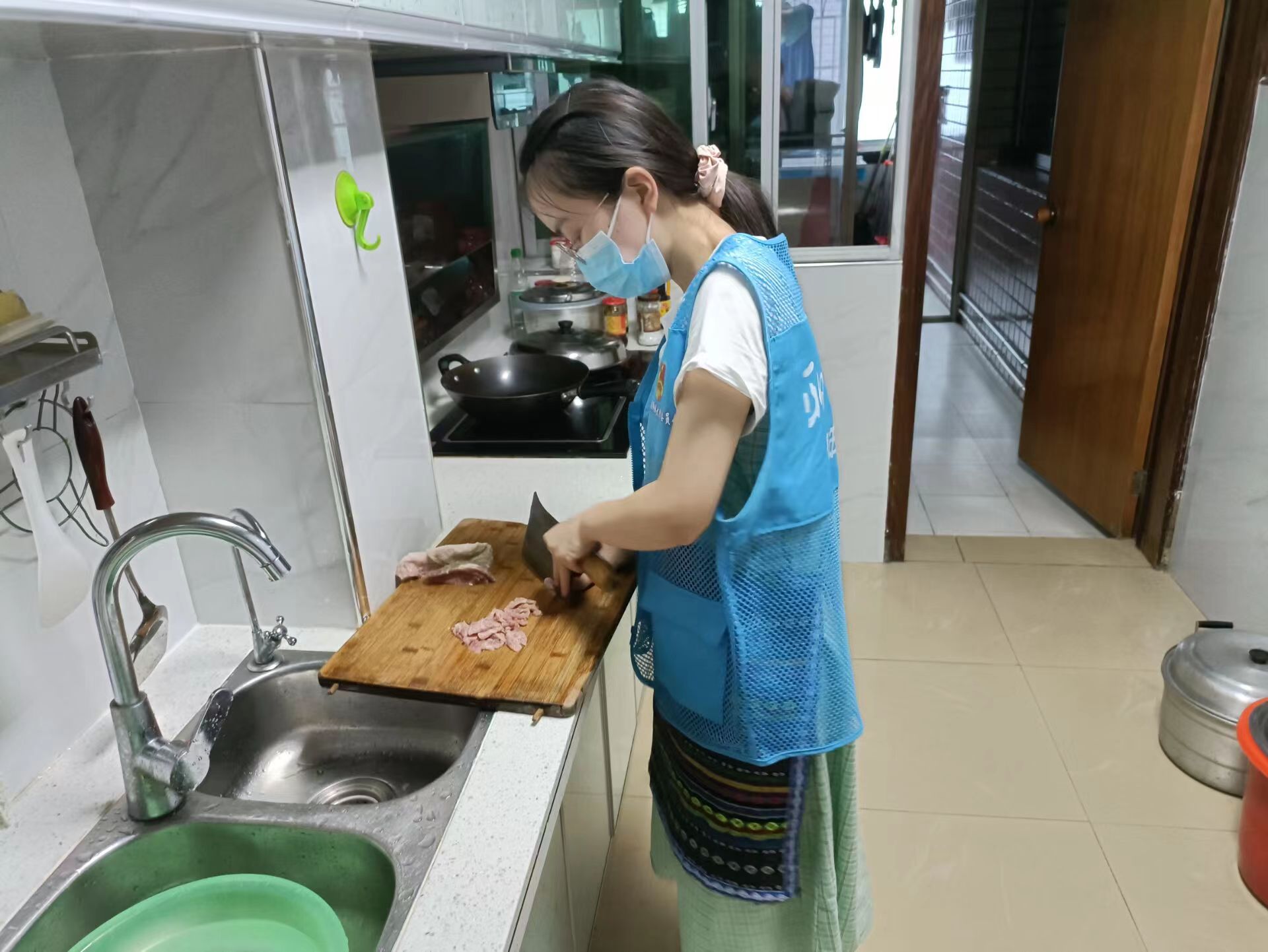 志愿者们来到社区,分组去往不同居民家中进行学习。居民首先强调了关于做菜安全的注意事项,并向他们介绍在中华传统饮食文化中,准备待客菜时要讲究荤素搭配、色彩搭配和烧炒搭配,做到咸甜适宜。同时,居民通过具体操作的形式详细展示了羊肉粉、豆花面及米豆腐等当地传统美食的制作方法和步骤,并鼓励他们积极学习和实践。针对土豆汤的做法,居民们讲述了如何切土豆、如何熬制、加盐的比例是多少……随后,在他们的指导下,志愿者们操起厨具进行切菜、拼盘及配料,运用煎、炒、炖等烹饪方法进行制作。由于部分志愿者缺少制作经验,对锅灶和其他厨具较为陌生,在制作过程中出现失误,居民们对其进行讲解和分析。在制作完成后,志愿者们纷纷表示通过此次活动自己有了一次认识食材的过程和动手操作的机会,也了解到中华传统美食文化的博大精深。