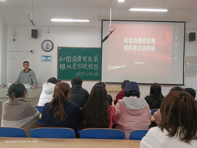 为普及理性消费知识,增强同学们的维权意识,帮助同学们解决关于消费维权方面的疑难问题,11月5日,我院于东校区6#A202举办“和谐消费促发展,维权意识进校园”活动。