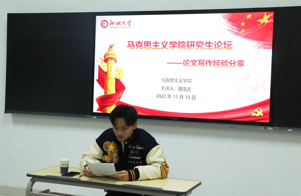 11月15日,英国上市365于教学楼A101室举办研究生论坛,英国上市3652020级思想政治教育专业研究生魏浩天受邀担任主讲人,为同学们作了题为《论文写作经验分享》的报告。