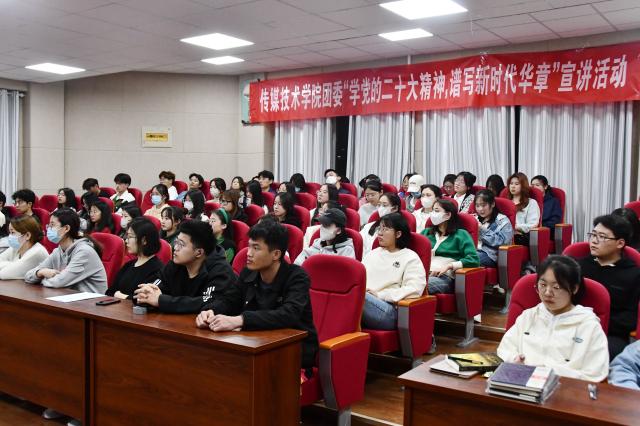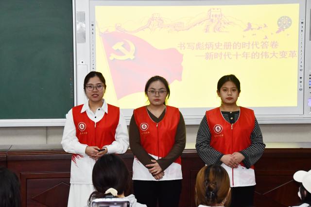 3月9日,我院青年大学生时政宣讲团成员张莹欣、黄明雪、郭春晖在西校区11#C401教室作了题为《书写彪炳史册的时代答卷——新时代十年的伟大变革》的宣讲。传媒技术学院学生党员、2022级学生代表参加了此次宣讲会。