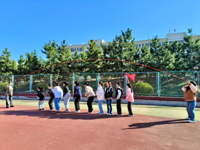 比赛采用团体赛形式进行,以班级为单位,各班选派12人参加。比赛共分两轮,第一轮为团队齐跳,每一位同学都发挥着“齐心协力、毫不懈怠”的团队精神,拼尽全力,齐声高喊口号,随着绳子的起落轻盈跳跃,笑声与汗水一同挥洒。第二轮为团队个人接续跳,这是考验勇气与默契的角逐。同学们接续跳跃,以优美的姿态展示风采,形成了一道道亮丽的风景线,在速度与时间的较量下,充分发挥技能,以奋进的姿态展示着青春的蓬勃与绚烂。