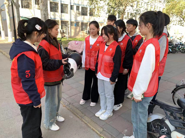 志愿者将典型交通事故案例与《道路交通安全法》相结合,以案释法,帮助同学们认识到佩戴头盔对于保护自身安全、营造社会文明风气、打造安全道路具有的重要意义。同时,志愿者手持头盔,围绕头盔的结构组成、分辨假冒劣质头盔的技巧、正确佩戴头盔的方法步骤等方面为同学们进行了细致宣讲,鼓励引导同学们养成良好的交通安全行为习惯,自觉遵守交通法规,抵制不文明交通行为。