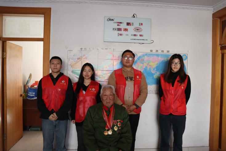 志愿者们来到唐延增家中,与他进行亲切交谈,询问身体状况和生活情况,叮嘱老人多添衣物、注意防寒保暖,并送上精心准备的慰问品。交谈中,唐延增讲述自己从入伍到现在的个人经历,分享自己经历过的军旅趣事,讲解自己对红色精神的内涵的理解。志愿者们从中了解到,唐延增曾参加过抗美援朝、淮海战役、渡江战役等,并在淮海战役中荣立三等功,为国家和人民做出巨大的贡献。