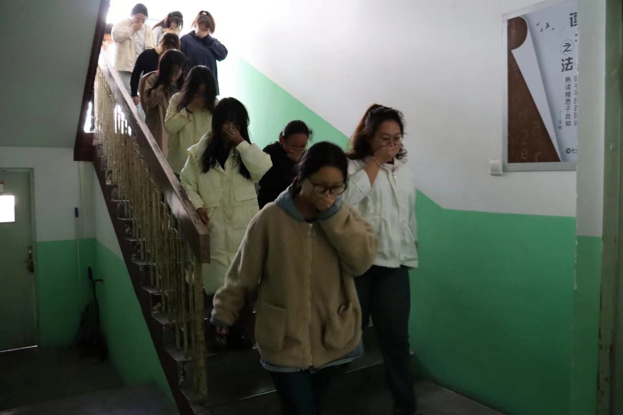 本次活动包括知识讲解、实际演练两个环节,为同学们提供了一场全面的培训。活动过程中,负责人详细讲解了如何排除火灾隐患、如何扑救初期火灾以及疏散逃生的路线规划三个方面的知识,并通过专业的动作示范,向同学们传授了火场逃生的方法与技巧,确保同学们在紧急情况下能够迅速、有序地撤离火场。 在实际演练环节中,随着警报的响起和浓烟的弥漫,各楼层楼梯口的管理人员沉着冷静,指挥学生用湿毛巾捂住口鼻,靠楼梯右侧弯腰小跑,沿指定疏散路线快速撤离宿舍楼。演练过程井然有序,同学们积极参与、态度端正、遵守秩序,收获了预期效果。2023级3班的高春荣同学表示,这次消防演习给她留下了深刻的印象。她不仅学到了许多实用的火灾逃生技巧,还深刻认识到防火安全的重要性,今后将更加重视消防安全,不断提高自己的防火意识,确保自己和他人的生命安全。