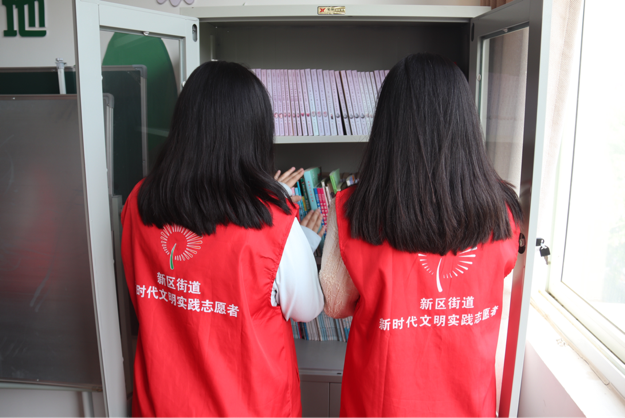 在社区图书阅览室,团支部成员展开卫生清洁与图书整理工作。他们分工合作、配合默契,认真清洁整理墙角、书架、桌椅,耐心地将书籍整理分类、摆放整齐,为社区居民创建方便、快捷、干净、整洁的阅读环境。在团支部成员的共同努力下,一列列杂乱的图书变得井然有序,焕然一新。