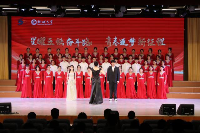 在众多精彩纷呈的表演中,我院师生为大家带来校歌《飞向美好的明天》和《有我》两首歌曲。他们用朝气蓬勃的歌声、热情洋溢的演唱,为大家带来了一场艺术盛宴。在《飞向美好的明天》的演唱中,我院师生身着统一服装,以饱满的热情和嘹亮的歌声展现聊大师生的青春活力和对未来的美好憧憬。在歌曲的最后,他们以朗诵的独特形式礼赞聊大建校五十周年,表达对聊大的热爱与祝福。第二首自选曲目《有我》,凭借其深刻的寓意和独特的艺术表现力吸引了在场师生的目光。在指挥同学的带领下,合唱队员齐声高唱,每一位队员都热情高涨、全神贯注,将青春的活力与激情共同注入舞台。两位领唱更是以嘹亮的歌声和深情的歌唱为合唱锦上添花,三位跳舞同学激情飞扬的舞姿也为整个表演增光添彩。