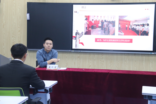 史仁扩以《争当可堪大用、能担重任的青年大学生党员》为题进行开班第一课,深刻阐述了新时代背景下青年大学生党员所肩负的崇高使命,并在此基础上对在场学员提出三点要求及殷切期望:一要明确未来作为青年大学生党员的角色定位,坚定理想信念,成为学风建设的探索者和社会责任的担当者;二要树立职责担当意识,做到立大志、明大德、成大才、担大任,勇于为党的事业贡献自己的力量;三要以优秀青年大学生党员为榜样,以身作则、率先垂范,通过自己的实际行动影响和带动身边的同学们共同进步,为实现中华民族伟大复兴的中国梦贡献青春力量。