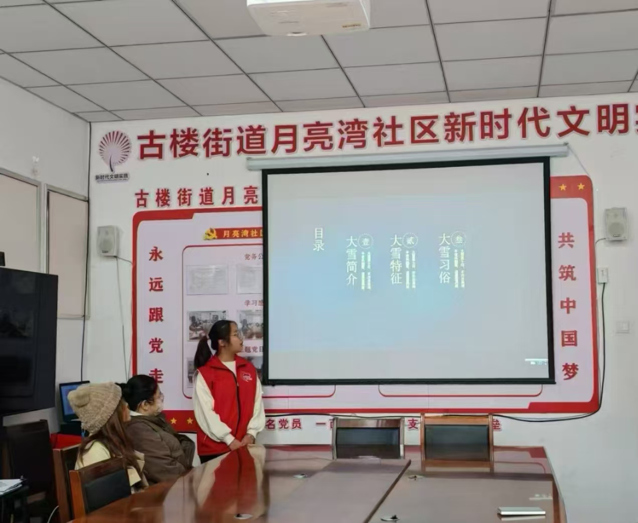 为传承和弘扬中华优秀传统文化,丰富社区居民的精神文化生活,11月9日,我院2024级1班团支部到古楼街道月亮湾社区开展二十四节气宣讲活动。