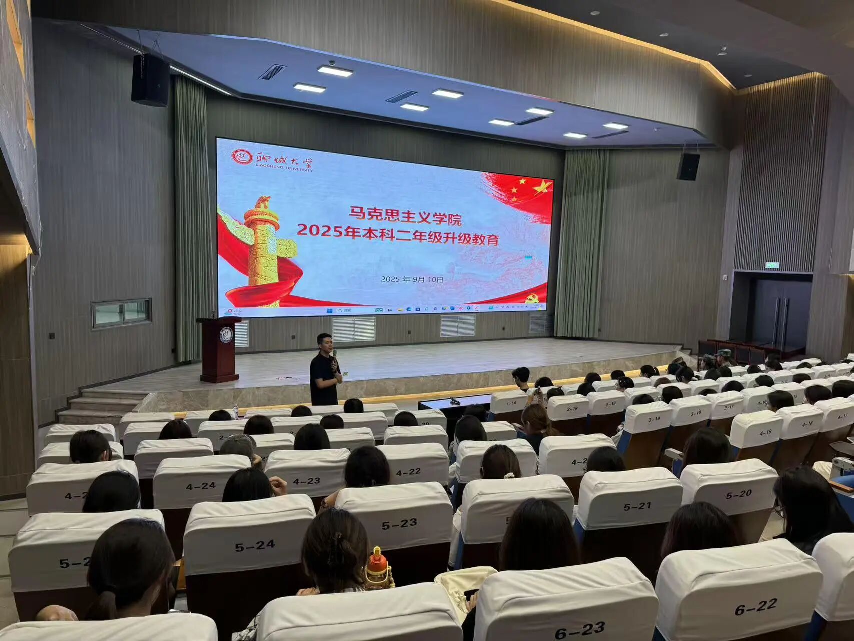 9月10日,我院于东校区实训楼报告厅召开本科二年级升级教育大会,旨在助力学生适应新阶段、明晰发展方向,团委书记、2024级本科生辅导员史仁扩及2024级全体本科生参加。