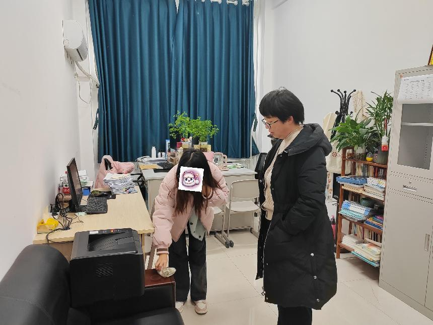 在走访前期,一位同学在办公室一丝不苟地擦椅子和另一位同学聚精会神地擦桌子的认真场面映入眼帘,李洪霞老师被同学们认真打扫的过程所感动。接着李洪霞老师与勤工助学的同学进行了面对面交谈,对勤工助学岗位学生的近况进行关切的问候,并耐心解答同学们在日常学习、工作中遇到的困惑。同学们也纷纷表达了自己的心得体会,分享了在工作中收获的技能与经验,以及对未来职业生涯的展望。此次活动让大家更加明确自己的职业规划,提升自身综合素质,更好地适应未来的社会挑战。一位同学还分享说:“将以此次走访活动为契机,更加珍惜这份来之不易的工作机会,努力学习、提升自己,为将来的职业生涯打下坚实的基础。”在活动的过程最后,李洪霞老师鼓励同学们说:“你们通过勤工助学的方式,展现出了积极向上、自立自强的精神风貌,我为你们感到骄傲!在这里想告诉你们,无论遇到什么困难,都不要忘记自己的价值和潜力。你们是优秀的学生,有着无限的可能性。相信自己,坚持努力,你们一定能够实现自己的梦想。”同学们纷纷坚定地点头。