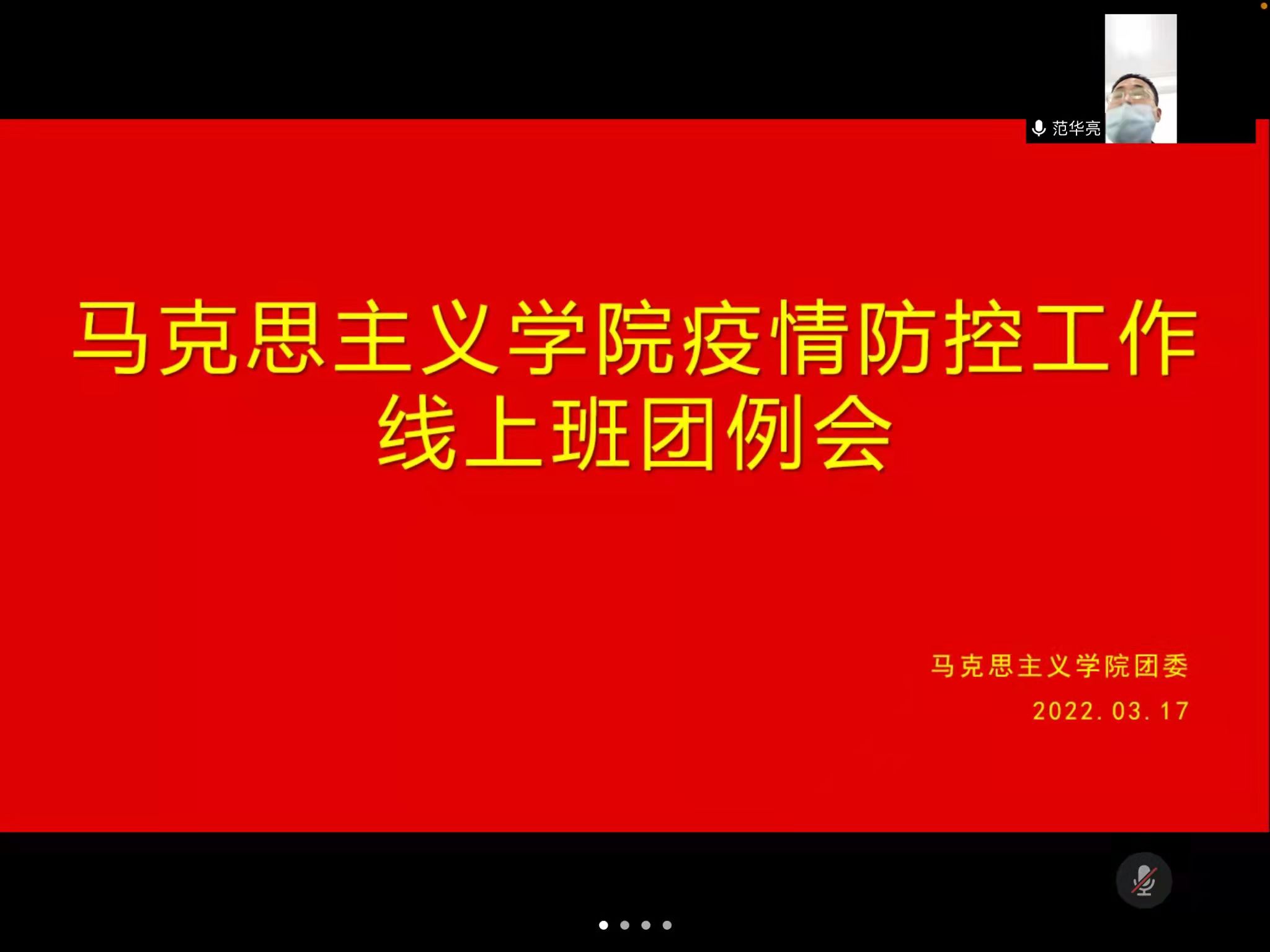 为使同学们进一步了解学院对于疫情防控的具体安排,切实做好疫情防控工作,保证同学们的生命健康安全,体现学院领导对于疫情防控的重视,3月17日,英国上市365开展疫情防控工作线上班团例会,英国上市365党委副书记、副院长范华亮,团委书记宋义明,辅导员朱晓涵以及全体班团参加本次会议。