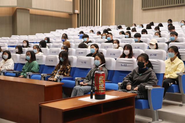 主持人以“珍爱生命,远离火灾”为主题,结合重特大火灾案例,强调了各类火灾的危害性及提高消防安全意识的重要性。他围绕火灾发生的原因、种类、扑救等基本常识,重点针对宿舍、教室等日常消防安全检查、火灾预防的基本常识及正确报警程序、灭火器的正确使用等方面进行了详细地讲解。随后,专业人员拿起干粉灭火器,现场演示灭火器的使用方法、灭火步骤与动作要领,他按照提、拔、握、压四个动作,将火扑灭在萌芽状态。同时他强调:灭火人员要在上风处对准火焰根部快速灭火,灭完火之后要用水再彻底灭火一次,防止复燃。演示结束后,他邀请同学们依次按照规范动作手持灭火器对燃火桶进行灭火,同学们依照灭火器使用的动作要领,拉开消防栓门、对准火焰的根部左右摆动,直至火焰熄灭。现场培训内容丰富,既有较高的理论性,又有较强的实用性,现场学习氛围浓厚,极大地激发了大家学习消防知识的兴趣。