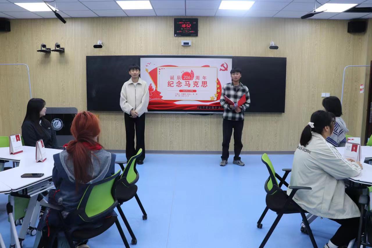 4月29日,我院开展第十四期思政年历微思政课交互体验活动——马克思诞辰206周年纪念日,习近平新时代中国特色社会主义思想青年学习会骨干成员朱锴、孙富硕担任主讲人。