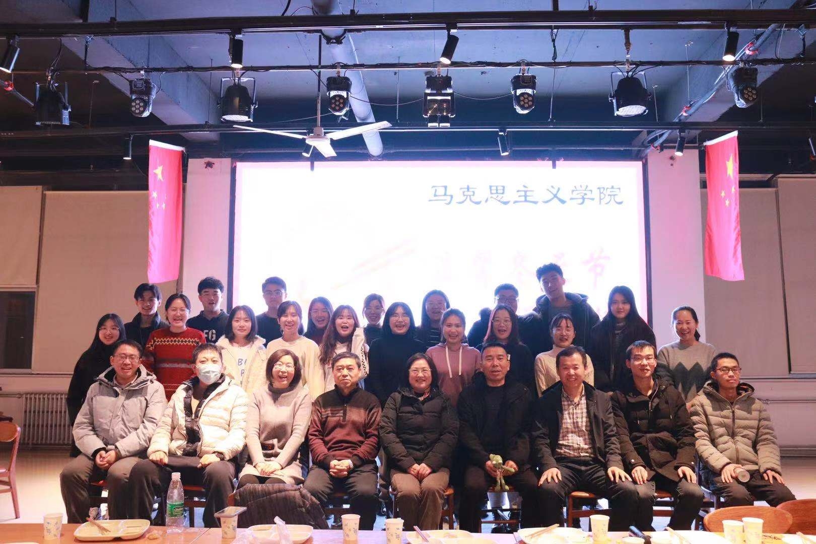 在食堂工作人员的帮助下,一盘盘热气腾腾的饺子端上餐桌,大家围坐在一起品尝自己的劳动成果,阵阵暖意涌上心头。紧接着,在主持人的调动下,几位老师和同学纷纷上台一展歌喉,场面骤然欢腾,尖叫声、鼓掌声不绝于耳。