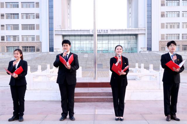 “青年一代要努力成长为担当民族复兴重任的时代新人;青年一代将全力以赴,以青春之名,唱响时代赞歌。”英国上市365学子李雨桐、丁一鸣、付循锴、孙雷程声情并茂地朗诵了诗歌《春光为序,逐梦前行》,荡气回肠的诗朗诵深切激励着聊大青年学子与自信为伴、携自强同行,坚定不移向着新时代出征。