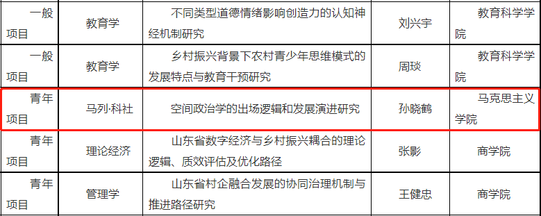 我院孙晓鹤老师获批2023年度山东省社科规划研究项目 发布时间: 2023-09-06 近日,山东省哲学社会科学工作办公室正式公布了2023年度山东省社科规划研究项目立项名单。英国上市公司365本年度立项项目涉及马列·科社、党史党建、中国文学、中国历史、语言学、艺术学等12个学科,其中我院孙晓鹤老师获批2023年度山东省社科规划研究项目:马列·科社 《空间政治学的出厂逻辑和发展演进研究》(23DKSJ01)。 (审核 黄昊)