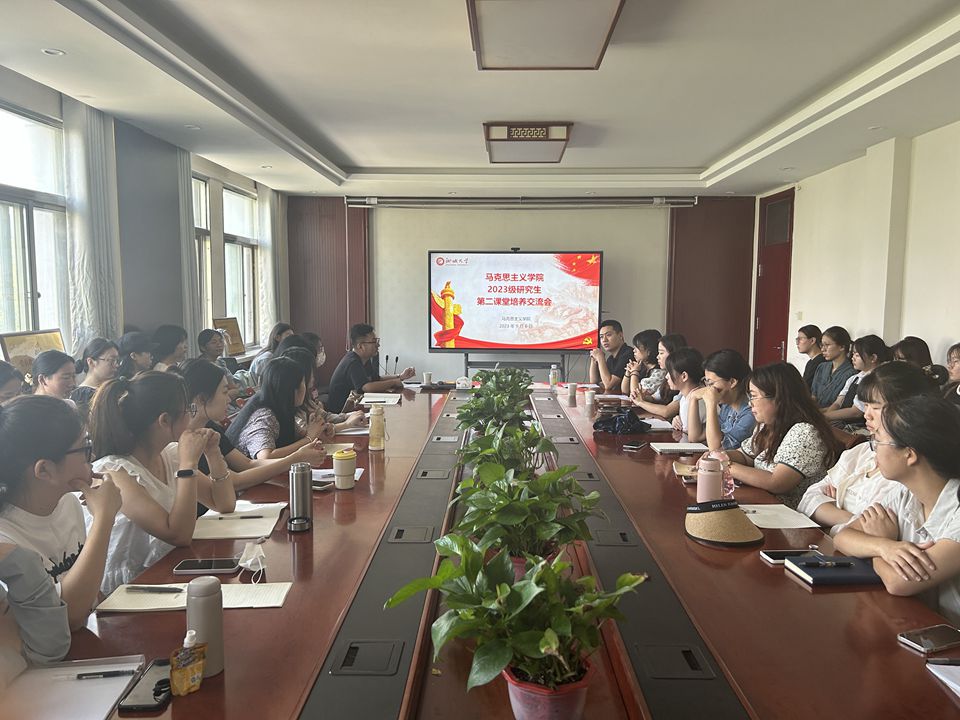 9月7日,研究生师生见面会,研究生导师说解会。学院党委书记张华筠,党委副书记、院长刘子平,党委副书记、副院长范华亮,副院长华敏、黄昊出席见面会。原理教研室教授王红霞,思想政治教育系主任高庆涛,辅导员李雨桐以及全体2023级研究生参加此次见面会。张华筠在致辞中代表学院对2023级研究生新生表示欢迎,并希望新生要求真学问,练真本领,要立身百行(航),以学为基,坚持“慎思明辨”,把学习放到一个更高的层次上,做“善学”的新时代马院学子。刘子平在讲话中简要介绍了学院办学历史、学科建设、师资力量等基本情况,并对新生提出了四点要求,一是要尽快转变角色,融入研究生的学习生活状态,更加注重对学习自主性和严谨性的培养。二是要围绕国家和现实需求,聚焦学术前沿,夯实学科基础,提升学术研究创新能力。三是要崇尚学术,求真务实,始终严格遵守学术道德规范。四是要努力做一个心思集中的人,在学习和生活中保持健康、自信的心态,敢于迎难而上。2023级学硕研究生孔扬代表新生作表态发言,承诺将刻苦学习、自强不息,遵规守纪、团结奋进,树立远大理想,努力在新时代建功立业。下午的导师说解会上,导师们就个人的研究方向、研究旨趣、选择学生的要求等一一进行自我介绍。尽管不同研究方向的导师所提出的要求各不相同,但大家对学生学习态度和学术功底的要求高度一致。此外,导师们还鼓励同学们在学术道路上勇敢尝试,不断探索,快乐学习。