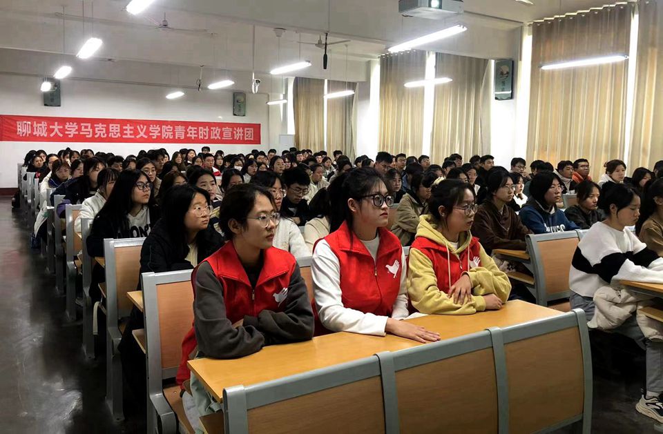 11月9日,我院青年大学生时政宣讲团成员王炎、赵乐文、徐玉莹、刘春晓、宋欣珂在药学院210室作习近平新时代中国特色社会主义思想的宣讲,药学院2022级、2023级学生代表参加此次宣讲会。