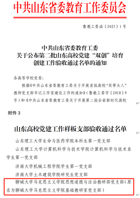 近日,中共山东省委教育工委公布了第二批山东高校党建“双创”培育创建工作验收通过名单的通知,思想道德与法治教研部党支部顺利通过省级样板支部验收。