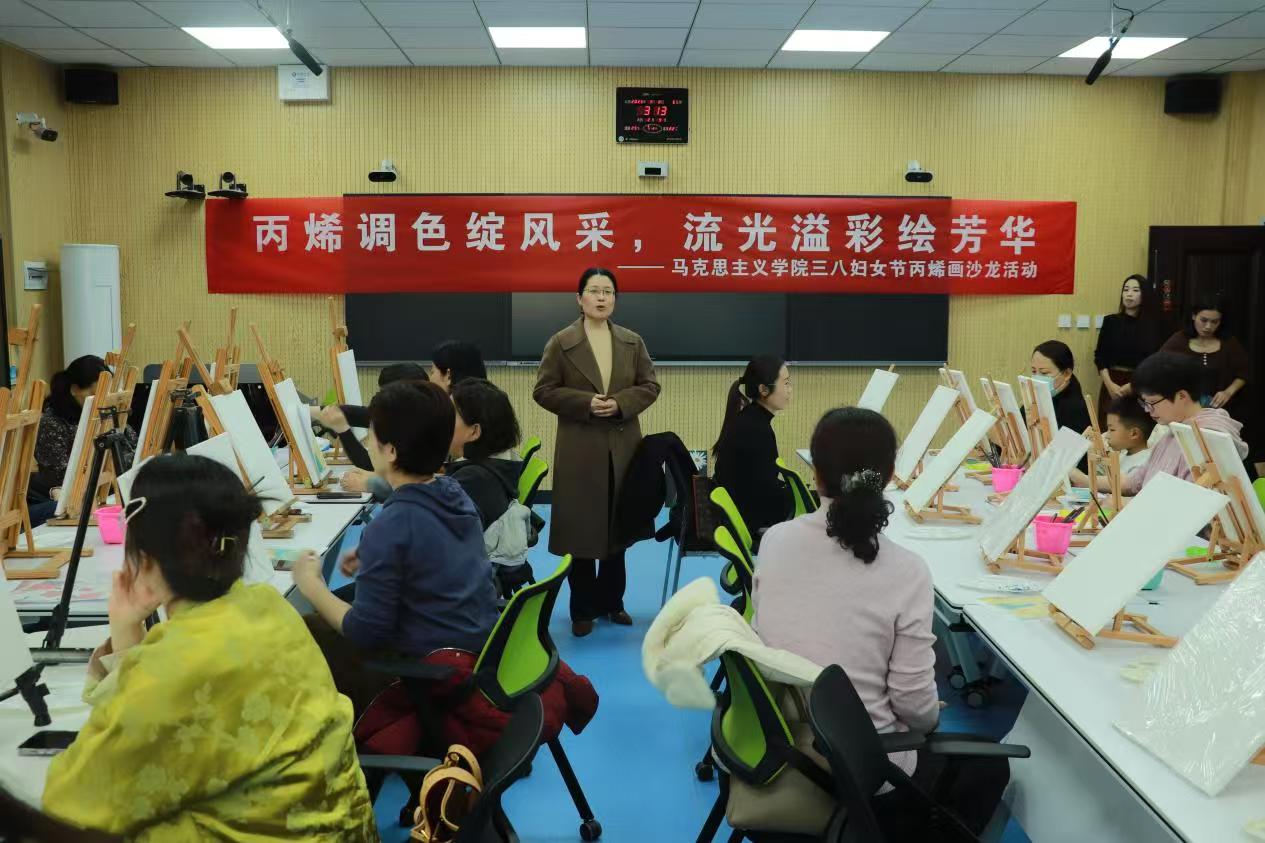 为庆祝第115个“三八”国际劳动妇女节,进一步丰富女教职工精神文化生活,3月8日下午,英国上市365工会举办“丙烯调色绽风采 流光溢彩绘芳华”丙烯画沙龙活动,华敏副院长出席活动并代表学院党委、行政向全体女教职工送上亲切慰问和祝福。