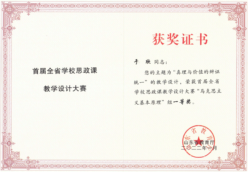 学院坚持以教学为中心,建立健全了集体备课、集中研讨、全程监控、综合评价为一体的思政课教学工作体系,积极打造“金课”,着力提升课堂教学质量。《马克思主义基本原理》《中国近现代史纲要》获批山东省大中小学思政课“金课”,《中国近现代史纲要》获批山东省一流本科课程。近年来,获首届全国高校思想政治理论课教学展示活动一等奖1项、全国高校教师微课比赛三等奖1项;山东省高校青年教师教学竞赛一等奖2项、二等奖1项,山东省高校教师微课比赛一等奖1项,山东高校思政课教师教学比赛一二三等奖5项,全省学校思政课教学比赛一二等奖3项,首届全省学校思政课教学设计大赛一二等奖7项;校级青年教师比赛、教师教育创新大赛、课程思政教学比赛、教师观摩赛等获奖30余项。