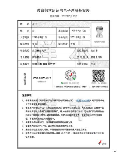 往届生须提供《教育部学历证书电子注册备案表》打印件(因毕业时间早无法在线验证的,需提供教育部《中国高等教育学历认证报告》)。